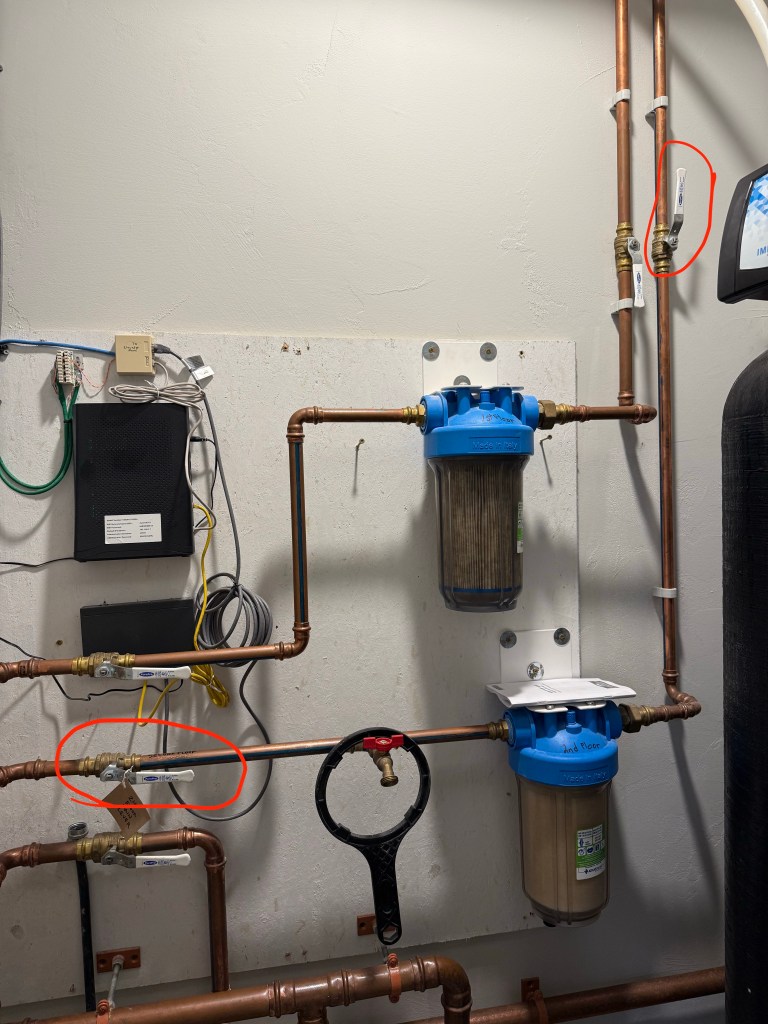 Note the position of the valves, because this shows how they should look after the water has been turned on.