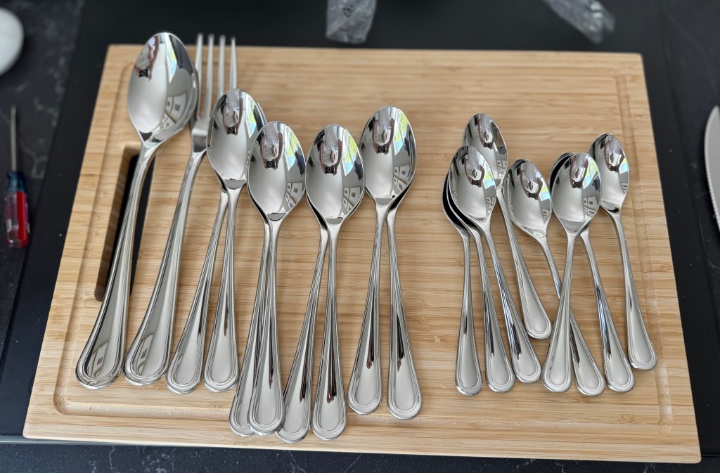 We used Williams-Sonoma gift cards received as gifts. Total cost: $2,100. (But we saved $120 in Louisville sales tax by having it all shipped to Lyme.)