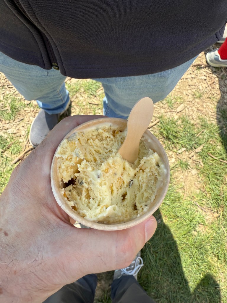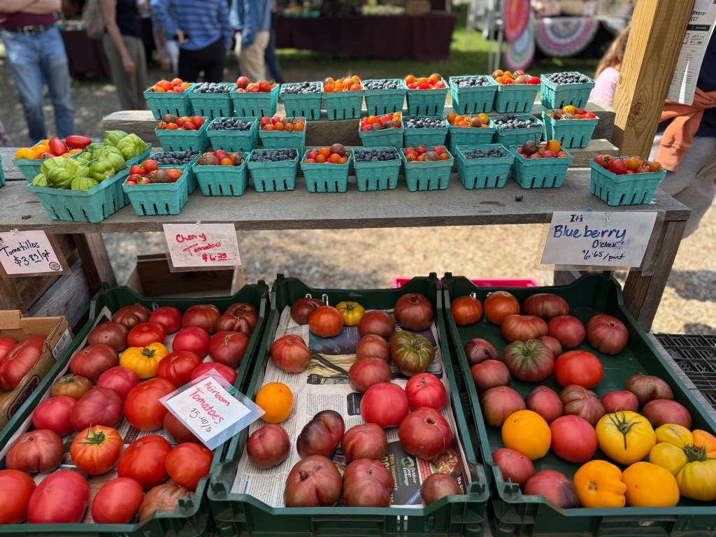 We saw lots of colorful vegetables; tried peach-basil ice cream (it was good), and bought small spice dishes from local potter Susan Leader.