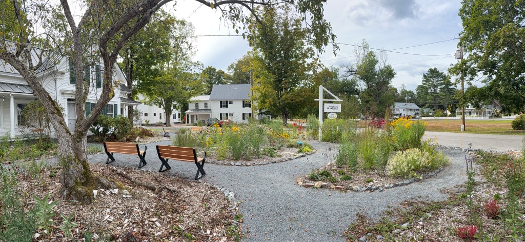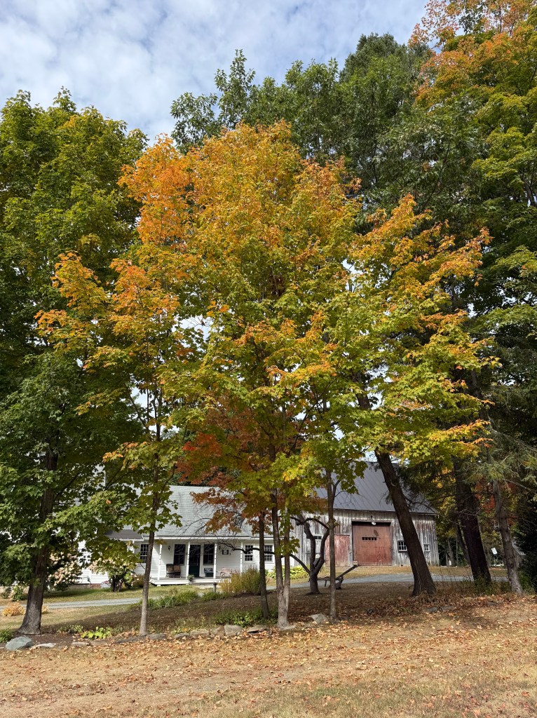 New Hampshire’s Official Fall Foliage Leaf-Peeper Forecaster™ says colors historically crest in this area Oct. 5-15. We’re already seeing signs here in our village. This photo and the one after were taken on the Common.