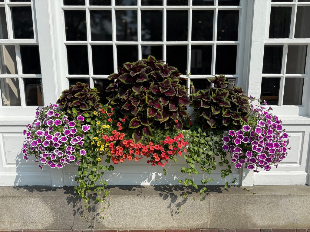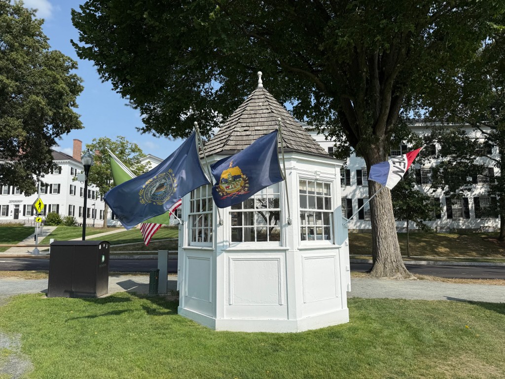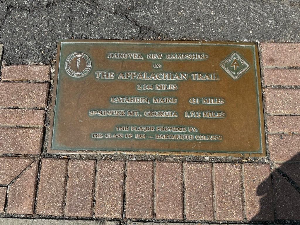 Historic Dartmouth Hall; the visitor booth; beautiful flowers outside Pine restaurant, and a plaque for Hanover’s spot on the Appalachian Trail.